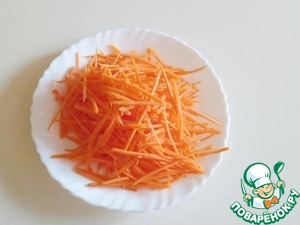 Вылить на хлеб третью часть картофельно-грибной смеси, сверху выложить морковь. Слегка примять.