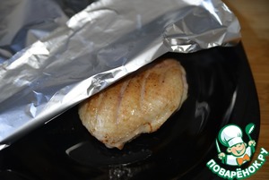 Убираем утку на тарелку и накрываем фольгой, чтобы она дошла до готовности.