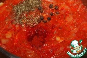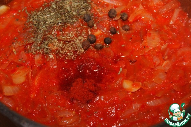 Добавить душистый перец, кайенский перец, базилик, орегано, соль по вкусу и тушить еще 5 минут.