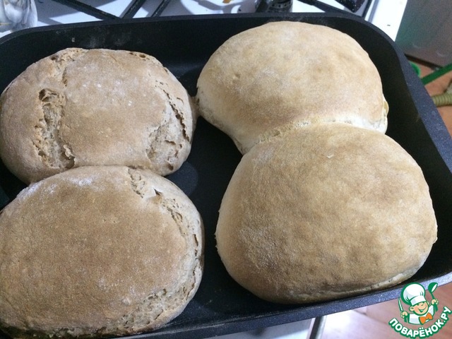 3. 2 булки из 4 у Вас треснули. Я бы порекомендовал делать бритвой надрезы, чтобы хлеб раскрывался в нужном месте, а не трескался где попало.