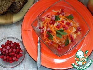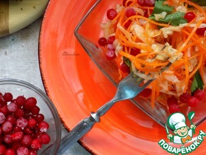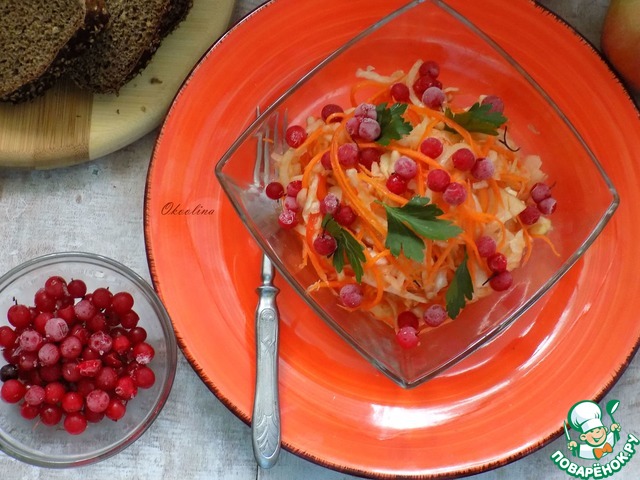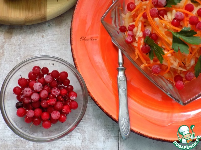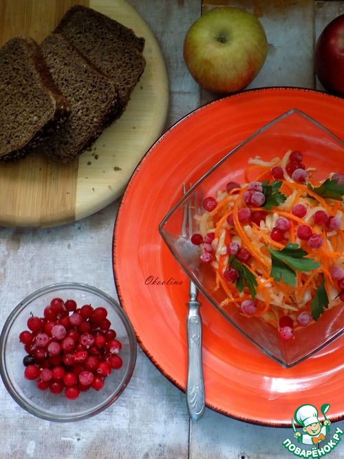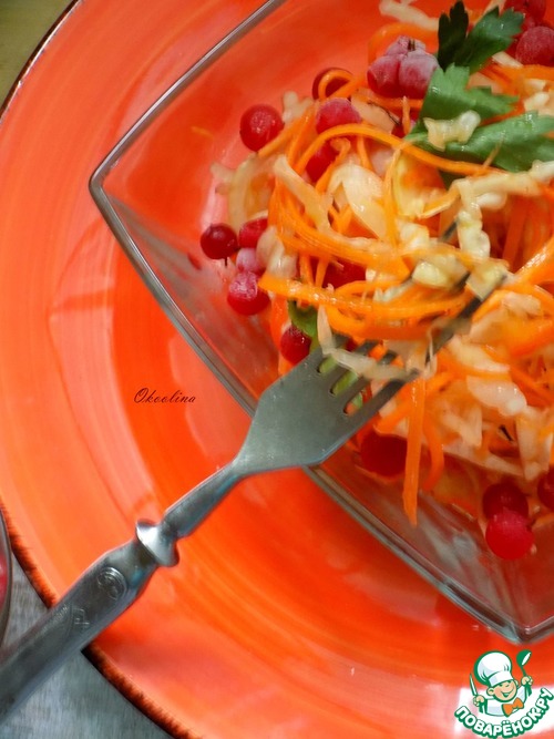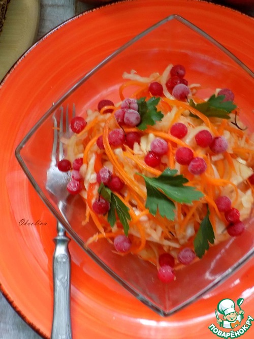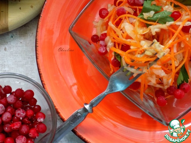 Как же мы можем обойтись осенью без капустных салатов? Да никак! Самый витаминный, яркий и насыщенный, пикантный, острый, а значит "жаркий". Да с приятной горечью калины, которую уже обдало морозцем. Калину можно не класть, а положить любую другую замороженную ягоду: клюкву, смородину красную или чёрную. Древний салат и я его делаю очень давно и на все праздничные застолья. Его съедают весь, сколько не сделай. Подходит для закуски и как дополнение с основному блюду. В общем, очень вкусный и сочный!
