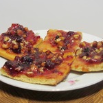 Нанести сверху слой повидла. В этот раз я готовила печенье с повидлом из клюквы. Можно использовать любое повидло, джем, густое варенье, что вам больше по вкусу.
