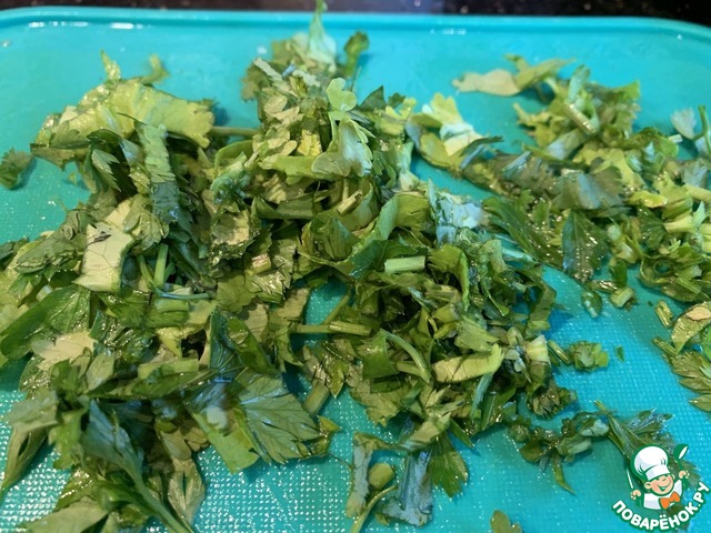 Зелень мелко порубите. За 5 минут до готовности, добавьте зелень в суп.