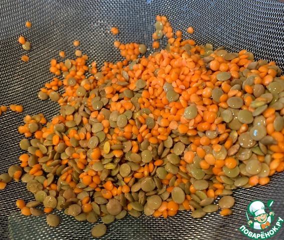 Промойте чечевицу.