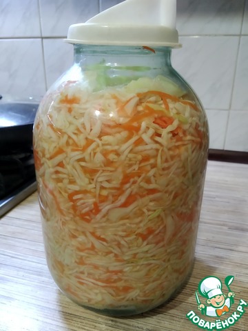 Время сквашивания зависит от температуры в помещении и может длиться от 3 до 5 дней. Как только видно, что брожение пошло на спад, рассол не выделяется - капуста готова. Уберите её в холодное место (холодильник, погреб, подвал) и наслаждайтесь всю зиму.