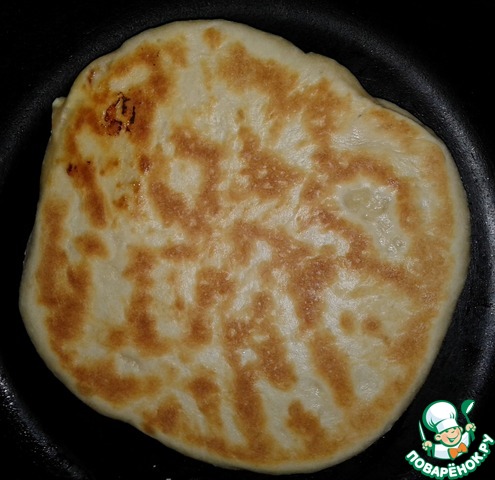 Сформируйте лепешки удобным для вас способом. Положите лепешку на сухую сковороду, накройте крышкой и подержите на среднем огне 2-3 мин.