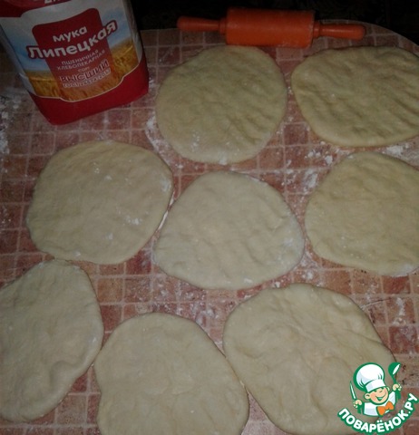 Разделите тесто на части. Возьмите один кусочек и сформируйте лепешку по размеру сковородки. Тесто мягкое и послушное, поэтому это легко можно сделать руками.