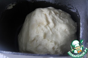 Для приготовления теста можно использовать хлебопечку. Или замесить руками, смешав все ингредиенты (без масла), а затем вмешать масло в тесто и оставить на расстойку в теплом месте (до увеличения в объеме в 2-2,5 раза)
