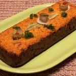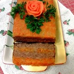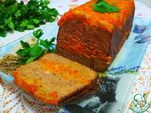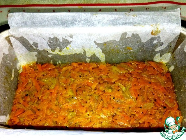 Подготовить форму для запекания. У меня 19х9х6 проложив качественным пергаментом, я смазывала саму форму, чтоб не двигалась бумага. Разделить печеночную смесь и морковную прослойку пополам. Первым слоем выкладываем морковную прослойку, хорошо ее уплотняем (удобно толкушкой), затем печеночную, разровнять лопаточкой сдвигая массу к бортикам, середина при запекании поднимется больше и повторить еще раз- прослойка-печень.
