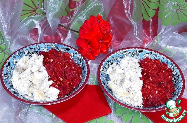 Рецепт «Салат морковно-свекольный с курицей»: