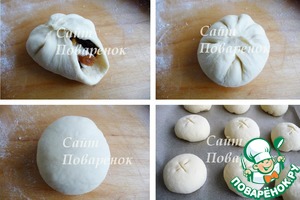 Тшательно скрепить концы, перевернуть швом вниз, прокрутить будущую булочку на столе, чтобы получился красивый шарик.