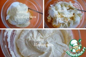 Для начинки 2 - смешать мягкий творог, сахар, цедру апельсина, манную крупу.