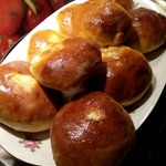 За 5-7мин до выпечки смазать булочки смесью яйца и сливок (у нас оставалось 1/2 шт яйца). -