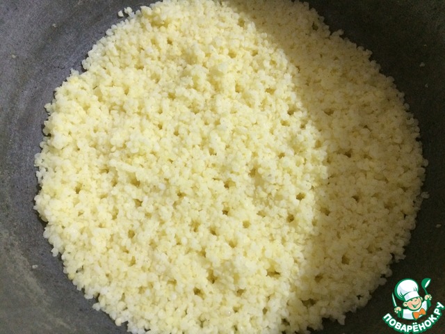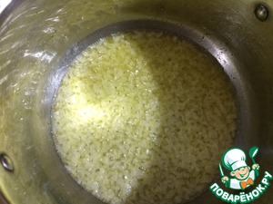 Наливаем в чугунок 3 стакана воды и доводим до кипения. Тем временем, берём 1 станка пшена и тщательно промываем тёплой водой, меняя воду 6-7 раз, пока она не станет прозрачной. Добавляем пшено в кипящую воду, и иногда помешивая, варим на медленном огне, под закрытой крышкой. Крупинки должны хорошенько распариться.