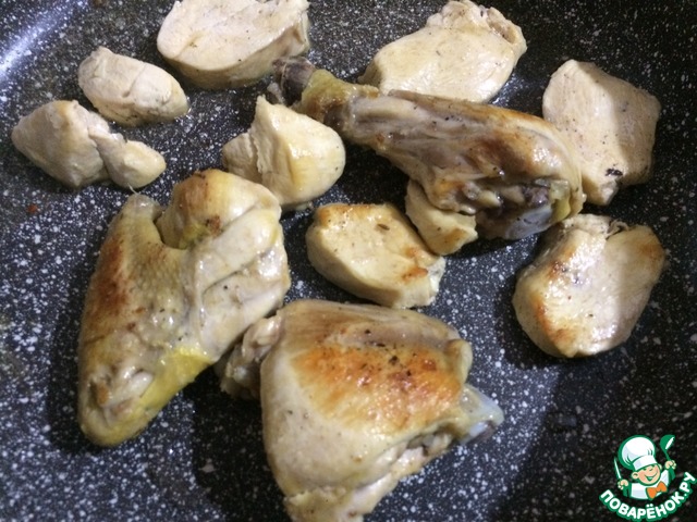 А если хотите, чтобы у курочки был чуть более яркий вкус, можно подрумянить кусочки мяса на сковороде со сливочным маслом.