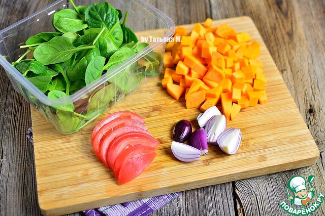 Ингредиенты для «Запеченая фриттата с тыквой и шпинатом»: