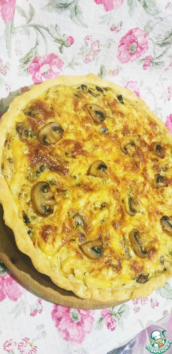 Грибы! Когда их и есть, как не осенью. Правда, свежих лесных грибов уже нет, зато у нас теперь есть шампиньоны и употреблять их можно круглый год. Вот ведь до чего дошел прогресс! Предлагаю вашему вниманию очень нежный и сочный пирог, который обязательно понравится всей семье! Напоминает Киш лорен, но состав другой.