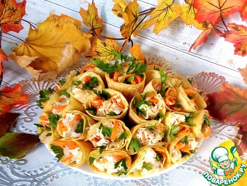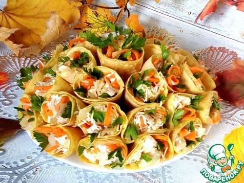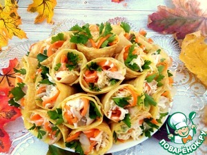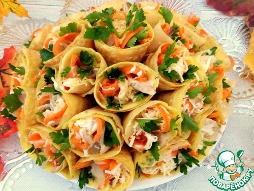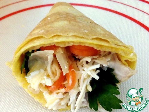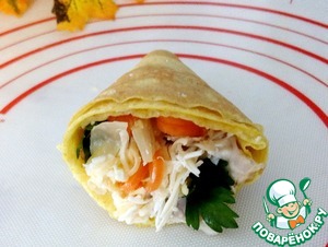 Рецепт «Солнечный салат в яичных блинчиках»: