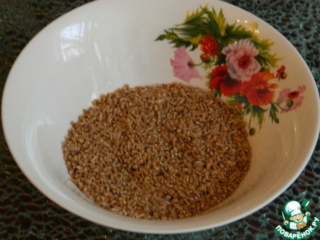 Приготовим полбу, помоем. Так как она готовиться долго 20-25 минут. Первой в суп закладываем крупу. Варим минут 5.