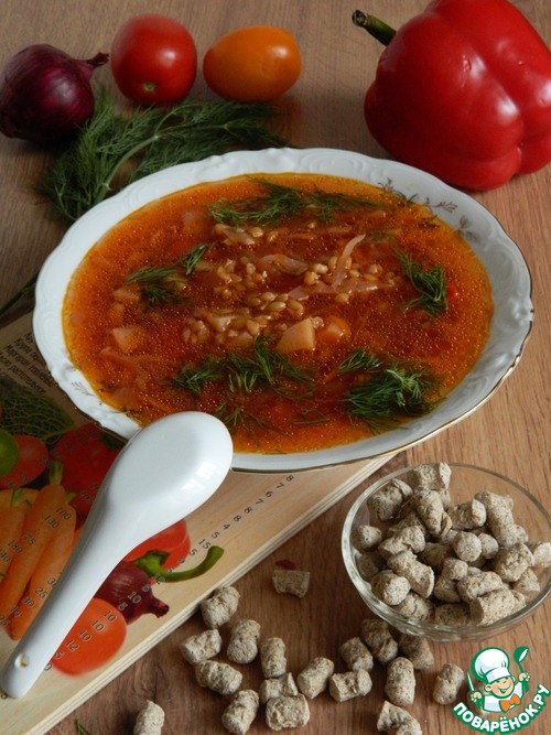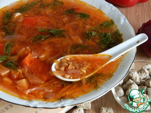 Последнее время мы с мужем облюбовали новую крупу полбу, как оказалось это очень полезный продукт. С некоторых пор мы отказались от мясных бульонов. После этого постные супы составляют основу нашего горячего питания. В силу этого я начала добавлять крупу в овощные бульоны, стараясь сделать суп более сытным. Для борща самой подходящей крупой для меня оказалась полба. Попробуйте такой борщ, я думаю Вам он придется по вкусу. Полба - прародительница пшеницы. Она растет только на чистых почвах. На протяжении нескольких тысяч лет полба не подвергалась никаким генетическим изменениям и является самым настоящим на 100% природным продуктом. Этот злак отлично подходит для здорового питания: при обработке сохраняют минералы и витамины, он богат клетчаткой и протеином.
