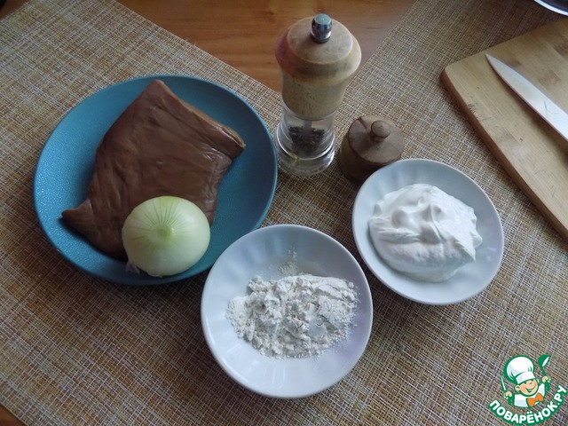 Ингредиенты для «Печень в сметане с коричневой вермишелью»: