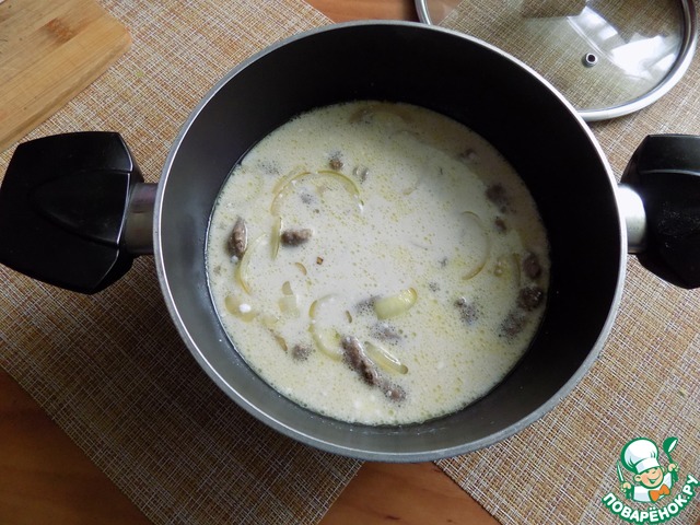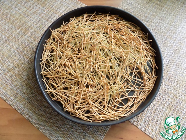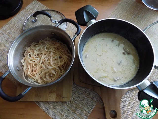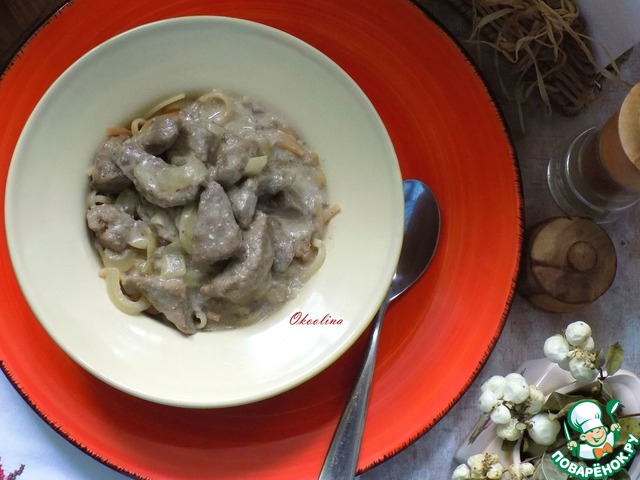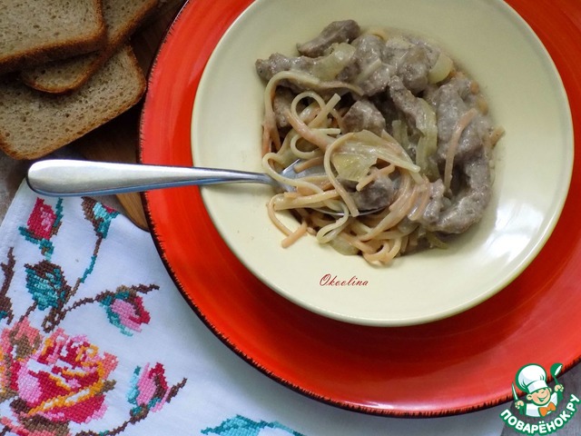 Рецепт «Печень в сметане с коричневой вермишелью»:
