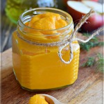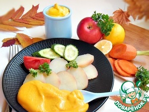 Сок лимона и горчицу в меньшем варианте количества, указанного в ингредиентах. Добавить морковь и яблоки. Измельчить до однородной массы блендером. -