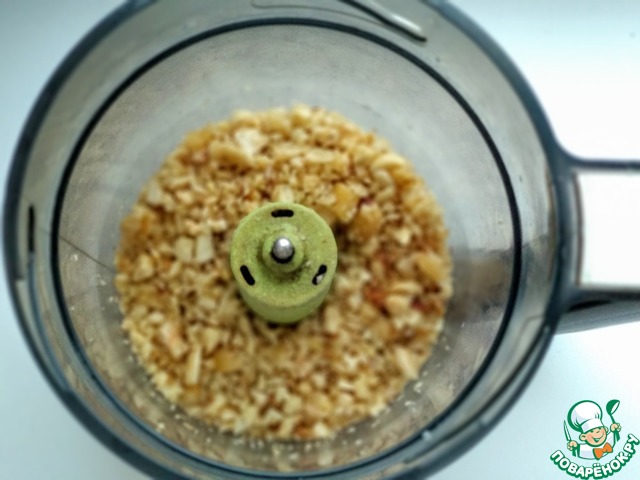 Орехи, кроме кедровых, измельчить в блендере. 2/3 часть добавить в тесто, перемешать.