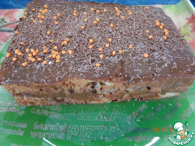 Я взяла прямоугольную форму размером 18х25 см, не знала, насколько поднимется бисквит, - так вот, смело берите форму большим размером, корж очень поднимается, а нам нужна основа в идеале не более 2х см ( у меня все 5 наверное получилось) -