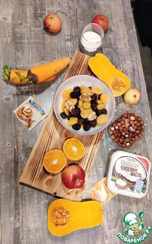 Ингредиенты для «Морковные кексы с сухофруктами и орехами»: