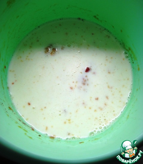 Влить молоко и тщательно еще раз взбить блендером (густоту напитка тоже можно регулировать под свой вкус, добавляя молоко).