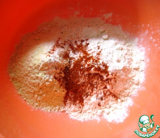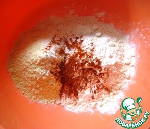• В миске смешать пшеничную и кукурузную муку, добавить щепотку соли и паприку. Перемешать