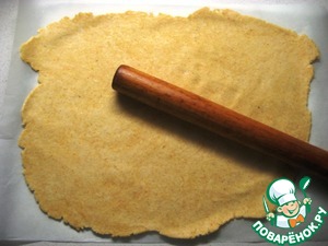 • Тонко раскатать тесто на листе пергамента.