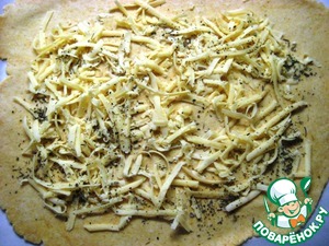 • Посыпать их оставшейся частью натертого сыра, присыпать 1 ч. л. базилика.