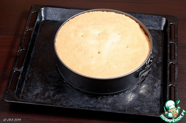 Выпекать в разогретой духовке до сухой лучинки. У меня это 35 минут. Все это время духовку я не открывала, наблюдала через стекло. Перед выниманием пирога закройте форточку. Бисквит получается идеально ровный.
