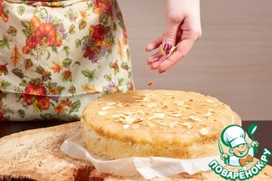 Поджарьте на сухой сковороде горсть миндальных лепестков. Посыпьте ими шарлотку.