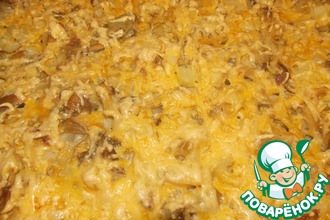 Минут за 5 до готовности посыпать тёртым сыром, и оставить в духовке.