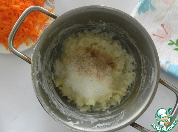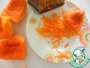 Тыкву очистить от семечек и кожуры (250г - вес очищенной тыквы). Натереть на крупной терке.