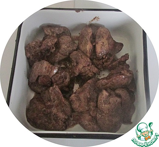 Обжариваем печень на хорошо разогретой сковороде со столовой ложкой оливкового рафинированного масла на большом огне минут 7.