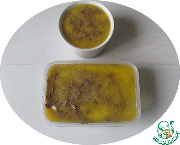 Перекладываем паштет в подходящие емкости, растапливаем 50 г сливочного масла и заливаем сверху. Убираем в холодильник на сутки.