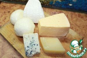 Стол, руки и скалку смазать растительным маслом. Тесто скатать колбаской и разделить на 12-14 частей. Заготовку тонко раскатать (для аккуратности можно использовать блюдце). Заготовки накрыть плёнкой, чтобы не заветривовались. На половину выложить сыр, накрыть второй половинкой и защепить, формируя красивый край.
