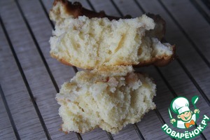 Как только кексы остыли, мне не терпелось их попробовать. Один кекс не дождался наполнения. Вот так он выглядит на разломе. Вкус отменный!