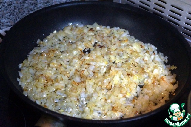 В сковороде разогреть топленое масло, обжарить лук до светло-коричневого колера.