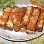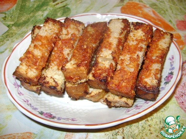 Итак, берём хлеб, нарезаем на брусочки.