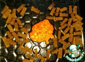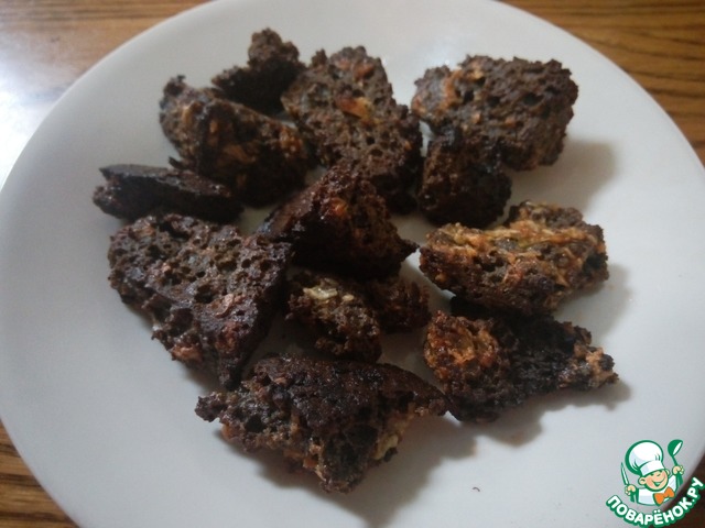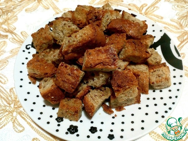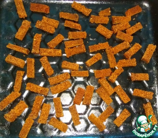 Ставим в разогретую до 220 градусов духовку на минут 10, чтоб сухарики хорошо подсушились. Они должны хорошо затвердеть. -