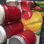 Сок готов. Всыпьте в него сахар, хорошо перемешайте ( до растворения сахара). Разлейте в стерильные банки. -
