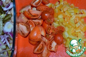 Яйца сварить вкрутую, лук почистить, помидоры вымыть.