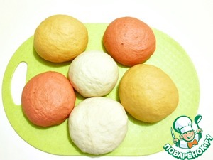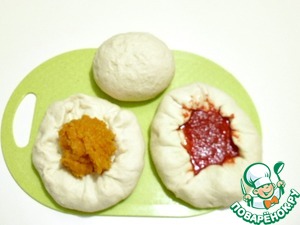 Дать тесту подняться и разделить каждый колобок ещё на две части.