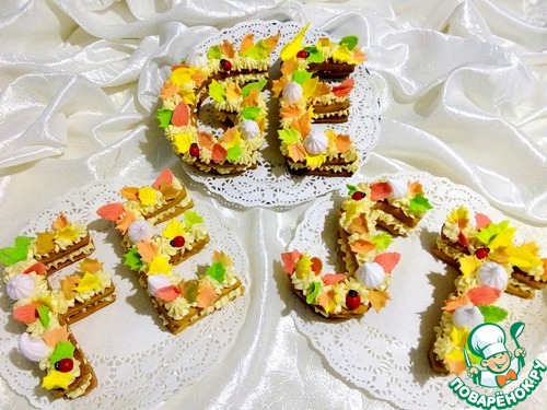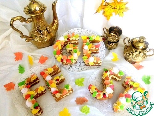 Пряничный тортик из букв - название спонсора нашего конкурса компании GEFEST. Прослоённые кремом буквы и яркое оформление из мастичных листочков – это настоящий осенний праздник! Пряничное тесто многим знакомо и приготовить его не сложно, так же, как и вырезать буквы. Сами понимаете, в рамках конкурса и был приготовлен этот пряничный тортик. Из такого же теста буду печь и расписные пряники на Новый год.