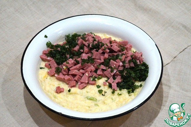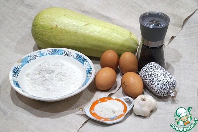 Ингредиенты для «Кексы из кабачков с колбасой»: